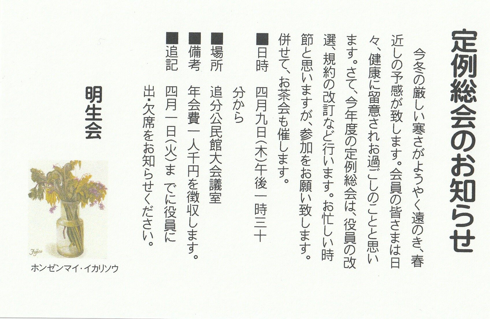 View Larger Image マレットゴルフ体験会参加者募集 By Fujiwara|2023-07-31T11:29:25+09:007月 31st, 2023|お知らせ| お使いのSNSでシェアをお願いします! FacebookXLinkedInPinterest Related Posts 明生会40周年を祝う会 Gallery 明生会40周年を祝う会 定例総会のお知らせー明生会 Gallery 定例総会のお知らせー明生会 追分区2月定例役員会の報告 追分区2月定例役員会の報告 3月29日(日)に追分区定例総会 Gallery 3月29日(日)に追分区定例総会 町道追分1号線で工事通行止め Gallery 町道追分1号線で工事通行止め